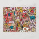 Cartoon Character Hand Drawn Toss Pattern Postcard. Colorful pattern with different funny and fun hand-drawn characters. Great for kids and teens.