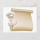 Illustration of a happy chef character pointing at a scroll maybe with a menu on it