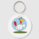 A cartoon style chicken posing wearing a beret. This design looks really effective on these Keychain