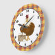 Not many Chicken Clocks out there. Most are Rooster Clocks. Our City Ordinance only allows a max of 6 chickens & no roosters. This Clock was spot on. Works & looks Great in our kitchen above the entryway. It's a "Keeper". The printing was high quality as expected. Got this model because too many other styles were too dark, making it difficult to see the clock hands & thus know the time. I would have liked a clear dome over everything thus making cleaning easier but that's OK as their is less glare the way it was made. It does have a good clear finish over the print for protection.