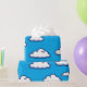 A playful seamless pattern of white cartoon-style clouds floating across a bright blue sky. This cheerful and lighthearted design is perfect for kids' products, nursery decor, baby shower themes, wrapping paper, and more. A fun and friendly cloud illustration that brings a whimsical touch to any surface.