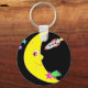 Keep your keys organized with a touch of cosmic charm using this whimsical crescent moon and retro rocket ship keychain. This small but sturdy accessory features a smiling man in the moon and a cute celestial illustration, making it a great gift for an outer space adventure enthusiast. The vibrant universe graphic and yellow galaxy art ensure you can always find your keys while adding a bit of shooting stars magic to your daily routine.
