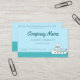 Classic cruise ship with twin smoking stacks set to the lower right is the focal of this card. Cruising through a teal ocean with a light blue sky which sets off the deep teal text. Great for family style travel agency or a fun loving ship captain.