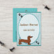 Very cute children calling card, in mint green stripe, a sweet cartoon dachshund and black little paw prints. Text is fully customizable in style, size and color.
