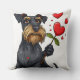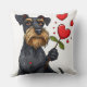 Cartoon dog with a flower throw pillow