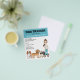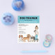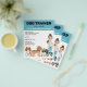 Designed with dog trainers and pet sitters in mind featuring Destei's original illustration of happy brunette cartoon girl together with four dogs including a blenheim Cavalier King Charles Spaniel, apricot miniature Goldendoodle, fawn French bulldog and a black and tan smooth hair Dachshund. The girl is wearing blue jeans and a white T-shirt. Her long brown hair is put in a ponytail and she has a friendly smiling face expression. The design has several personalizable text areas for business info and details. Eye-catching and cute design to promote your dog related business featuring Destei's unique artwork.