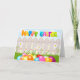 Simply gorgeous Easter card with cover showing "Happy Easter" in colorful gradient colors, various colors of shiny Easter eggs, flowers, fence with realistic nail heads. Feel free to add to or change the provided inside text message.