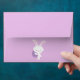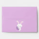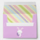 A sweet easter design envelope to coordinate with matching Easter greeting cards or invitations, featuring a cute cartoon easter bunny holding an easter egg in its arms the back of the envelope. The inside of the envelope has a striped background of lovely spring pastel colors.