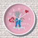 Cartoon Elephant and Hearts Girl Pink Wall Clock