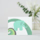 A whimsical design featuring a cartoon aqua colored elephant with a whimsical rainbow behind him. Customize as desired.