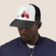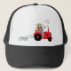 Cartoon Farmer Driving A Red Tractor Trucker Hat