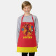 Great color and even though I ordered the kid size, it covers well enough to use during the holidays. I am not a big woman and prefer a shorter apron. I stand 5"6" and the length of the garment goes to mid-thigh. The tie straps fit well at my waist and even though there is no neck strap adjustment, the opening is plenty big enough. I am happy with the size and fit. I am sharing my apron with my 10 year old grandson, too! The color is vibrant and looks good, as shown on the website. The stitching looks strong and reinforced. Photographed is front side and back side of the apron, reinforced straps and coloring. My phone camera may not be the best at showing the details.