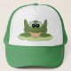 This hat features a cute cartoon frog. This green frog design can be placed on several hat / cap styles in additional colors. Frog lovers this hat is for you.