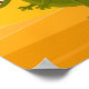 This Nursery Poster features an illustration of the cute funny cartoony Dinosaur running under the hot Sun. Poster is designed in the warm colors: yellow, orange and green. Could be a great addition to your kid's room décor.