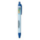 Very nice blue, or black ink pen. I will be buying more. The print was fine. I can easily see the print. The flowers look great.