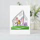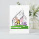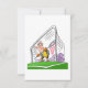 This is a fun cartoon style design of a goalkeeper. This goalkeeper has a mean determined look on his face as he stands in the soccer goal. The funny thing is he is holding a net to try and stop the balls but has failed as there is several soccer balls behind him. This cartoon goalkeeper design looks great on these invitations