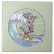 A funny cartoon illustration of a goat on a surfboard. This surfing got is in a huge barrel wave.