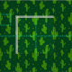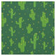 Fun cartoon pattern of green cactus plants, on a deep green background.