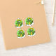 Set of four cut vinyl stickers with an illustration of a cute green dragon's head; the happy smiling dragon is holding a golden egg; fantasy animal cartoon motives for kids; with custom text template for your child's name or custom message