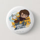 Cartoon Harry and Hedwig Flying Past Hogwarts Button