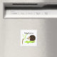 A cute cartoon hedgehog on a patch of grass checking out a branch of leaves adorns this magnet.