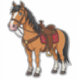 Bright cartoon horse wearing a saddle and bridle, ready for riding. Friendly expression and bold colors make it perfect for kids, education, branding, or family-themed projects.