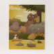 This cartoon style jigsaw puzzle features illustration brave kid travelling along the jungle river on his inflated boat. Various jungle animals such as gorilla, elephant, python, parrot surround the boy. Ideal puzzle for kid's brain training. Design is done in golden tones.