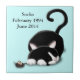 Cartoon of a black and white kitty asleep with it's toy mouse. Fun and sure to bring a smile whenever you see it. Customizable text and background color.