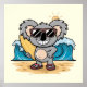 Hang ten with our poster featuring a laid-back koala soaking up the sun in flip flops and shades, ready to catch the waves with its surfboard. Perfect for adding a touch of beachside relaxation to any space.