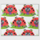Cartoon Ladybug Bow and Flowers Wrapping Paper