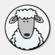 Cartoon drawing of a lamb. wool, ears, mammal, stare, pink, black, white, grey colors.