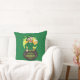 Cartoon leprechaun in a pot of gold holding a pint throw pillow