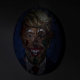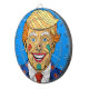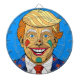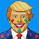 A cartoon man with blonde hair with a clown face smiling wearing a suit.