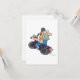 This design is a cartoon man on a motorcycle. The man is riding off looking behind him. He has a red love heart tattoo on his arm. This cartoon man on a motorcycle design looks great on this Invitations