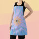 Great color and even though I ordered the kid size, it covers well enough to use during the holidays. I am not a big woman and prefer a shorter apron. I stand 5"6" and the length of the garment goes to mid-thigh. The tie straps fit well at my waist and even though there is no neck strap adjustment, the opening is plenty big enough. I am happy with the size and fit. I am sharing my apron with my 10 year old grandson, too! The color is vibrant and looks good, as shown on the website. The stitching looks strong and reinforced. Photographed is front side and back side of the apron, reinforced straps and coloring. My phone camera may not be the best at showing the details.