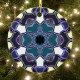 This funky mandala flower design features blue, purple, black, and white in a cartoon style. Trippy geometric visuals for the modern hippie or lover of vibrant colors!
