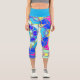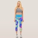 Cartoon Mandala Flower Blue Yellow and Pink Capri Leggings