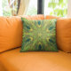 Cartoon Mandala Flower Green Yellow and Blue Throw Pillow