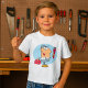 A cartoon style mechanic standing with some tools. This design looks really effective on this Boys T-Shirt
