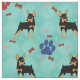 Cute cartoon style Miniature Pinscher with a scattering of bones and paw tracks. This design is intended to tile seamlessly.