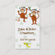 This adorable profile calling card has two fun cartoon monkeys hanging from a tree, against a green polka dot background. Ready to customize with your child's name and info. Very sweet profile calling card / enclosure card.