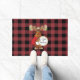 Cartoon Moose Black Red Buffalo Plaid Christmas Doormat
