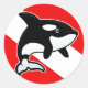 This cute Orca or Killer Whale swims in front of a dive flag. This will make a great gift for scuba divers who love Orcas.