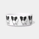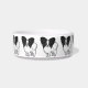 This is a heavy, durable bowl decorated with Tibbies of many colors, the perfect size for hungry/thirsty Tibs. The design is interesting and printing clear.