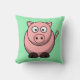 Cartoon Pig on Mint Green Throw Pillow