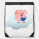 Cartoon Pig Reader on Cloud Drawstring Backpack