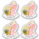 Set of four cut vinyl stickers with an illustration of a cute pink dragon guarding a treasure; fantasy animal cartoon motives for kids; with custom text template for your child's name or custom message