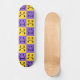 Lovely hand-drawn cartoon demons/vampires/monsters or whatever you think they are! sad and happy faces with fangs in purple and yellow quadrants pattern. Simple minimalist checkered skateboard. Pop art cute unique skate.