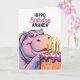 Cartoon Purple Cake Funny Hippo Birthday Card