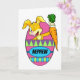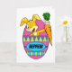 Custom front, add your text, Easter greeting card for a nephew. Card front has a custom text area for a name or you can change the relationship (i.e. brother, grandson, etc.). Cute and very colorful illustration of a bunny grasping a big fresh carrot in orange and green colors. Art, image, and verse copyright © Shoaff Ballanger Studios, 2022.